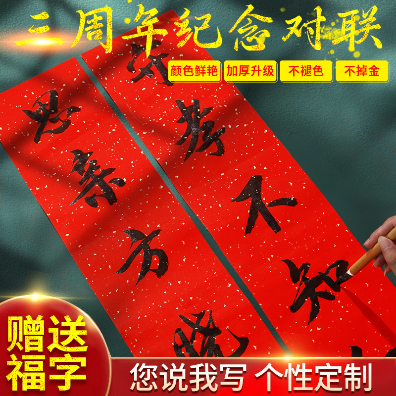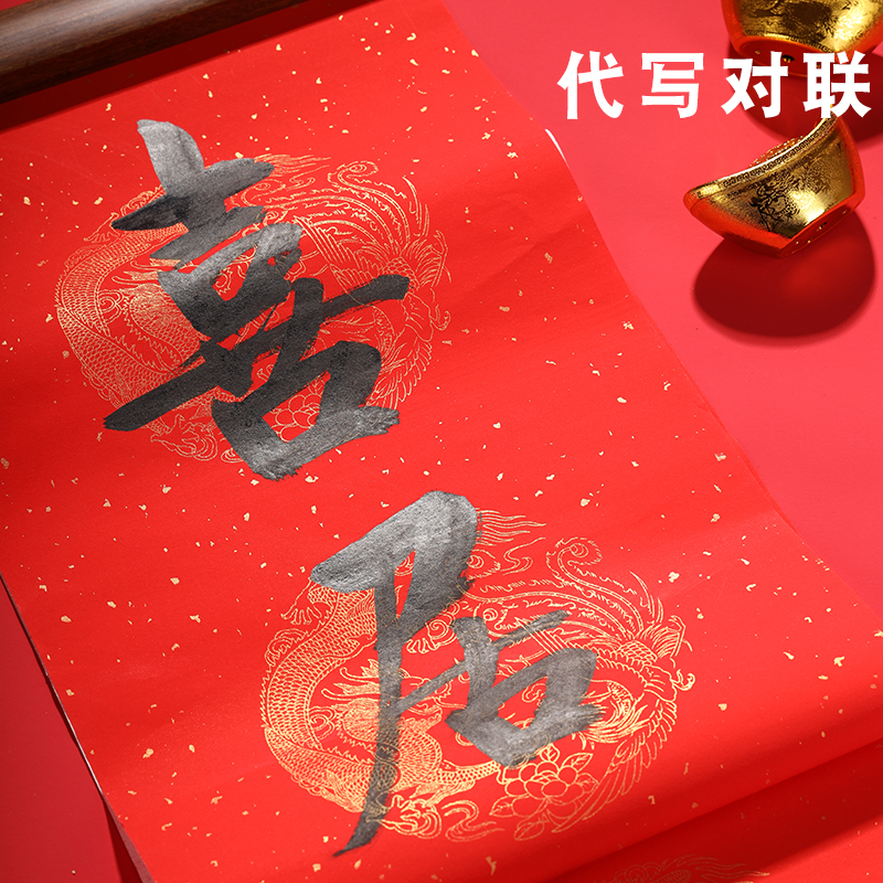 手写对联定制加厚万年红珠江百福铜版纸春节家用结婚订制春联代写