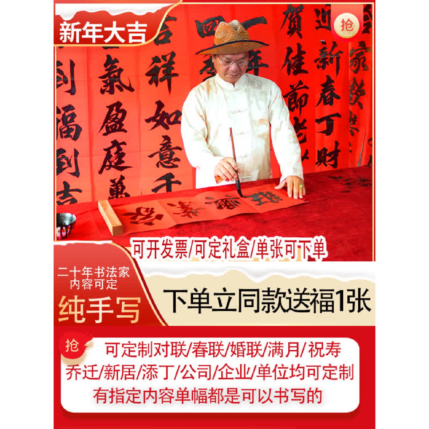 手写对联定制新年春联订做春节结婚乔迁开业用个性订制写春联代写