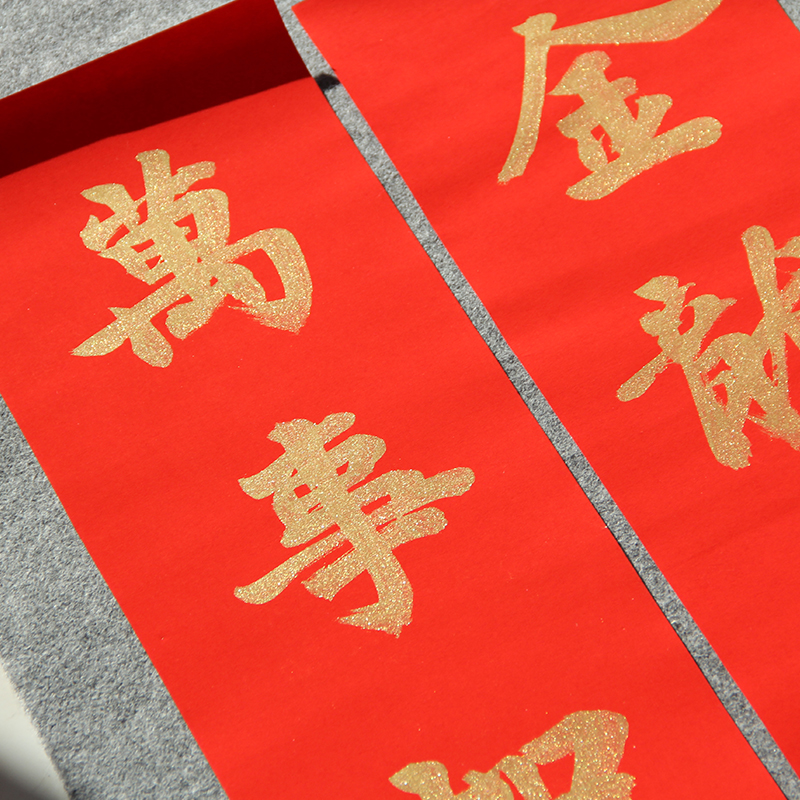 金色春联公司单位家庭手写对联定制过年书法新居自建房厂房大尺寸