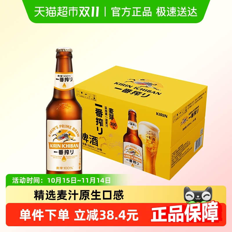 日本KIRIN/麒麟啤酒一番榨系列330ml*24瓶清爽麦芽啤酒瓶装整箱