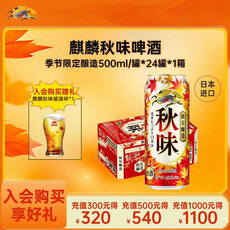 【季节限定】KIRIN麒麟秋味啤酒500ml*24罐日本进口
