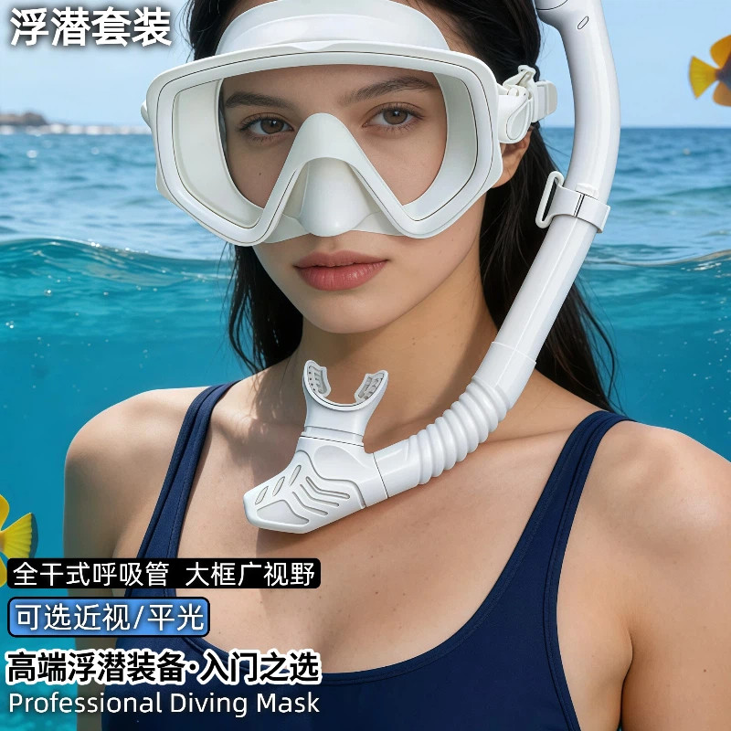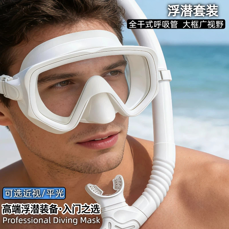 成人近视硅胶潜水镜装备浮潜二宝套装防呛水全干式呼吸管游泳面罩