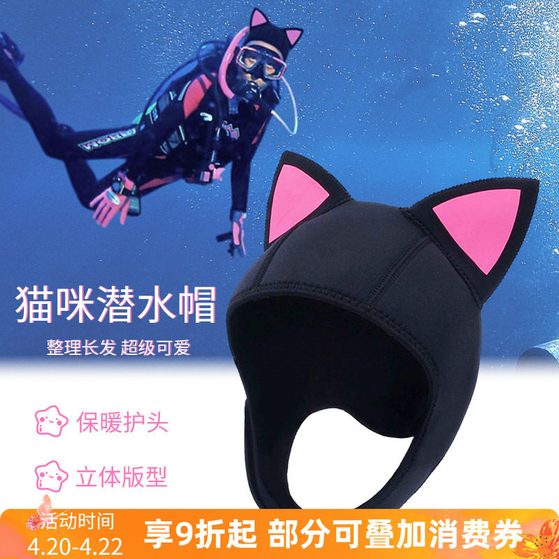 卡通浮潜水头套脸基尼可爱猫咪耳朵游泳帽女冲浪防晒帽子专业装备