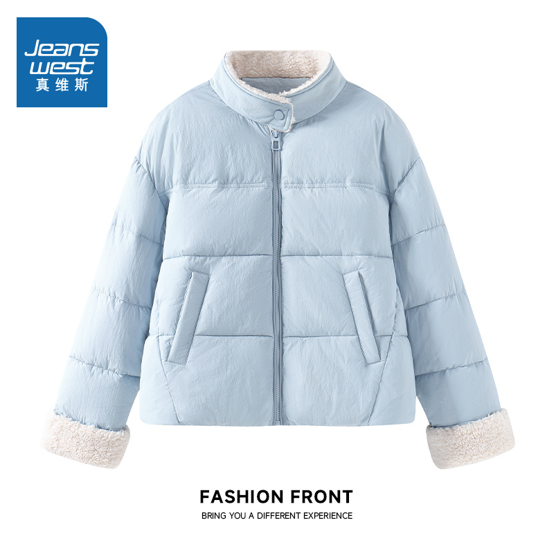 NOW真维斯立领短款棉服女款2025新款冬季韩版保暖棉袄夹棉外套女