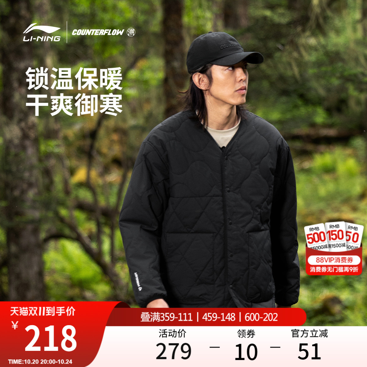 【双11预售】李宁火锅羽绒服丨男冬季短鸭绒轻薄棉服立领运动外套