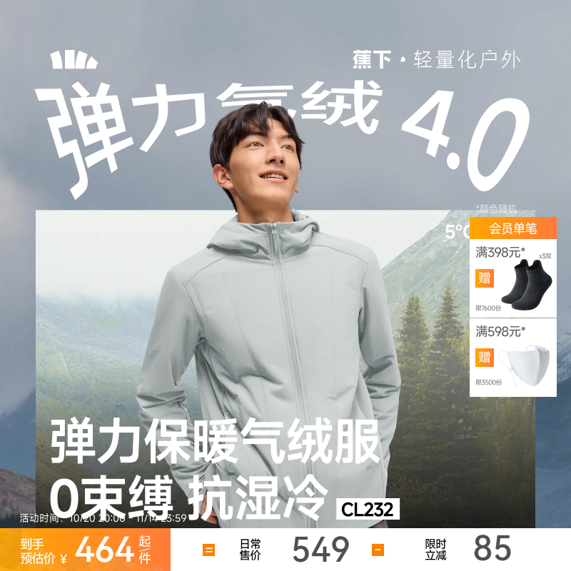 蕉下运动气绒服男款高弹户外防寒保暖速干防泼水棉衣内胆棉服外套