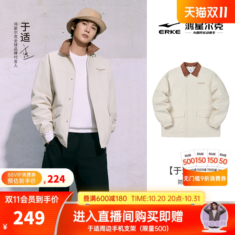 鸿星尔克于适同款棉服男款冬季新款男士男生翻领棉衣夹克加厚外套