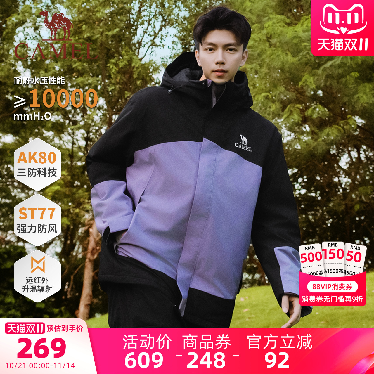 [双11预售]骆驼户外加厚棉服冲锋衣男防风防水外套夹棉拼色登山服