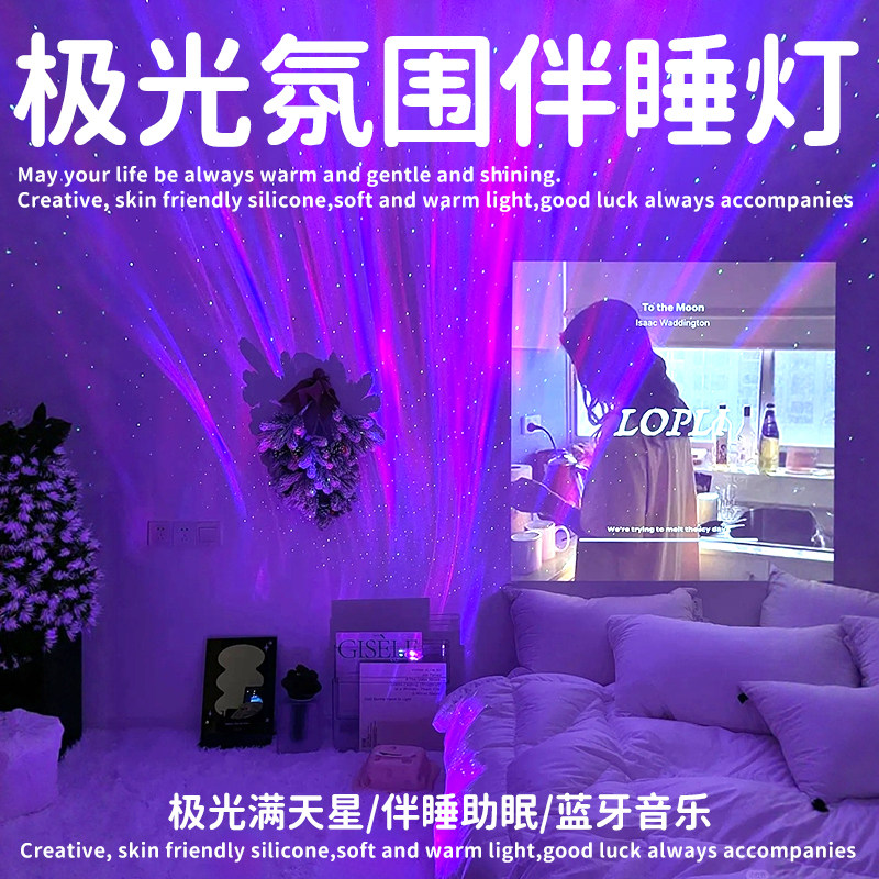 星空投影灯满天星小夜灯卧室睡眠床头氛围2025新款夜光台水纹拾音