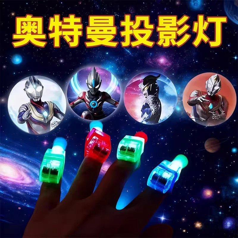 奥特手指投影灯发光卡通戒指灯夜光物件蹦迪玩具房间客厅儿童礼物