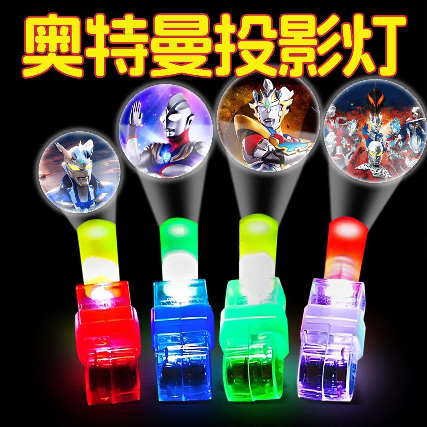 奥特曼手指投影灯儿童发光卡通戒指灯夜光物件发光演唱会蹦迪玩具