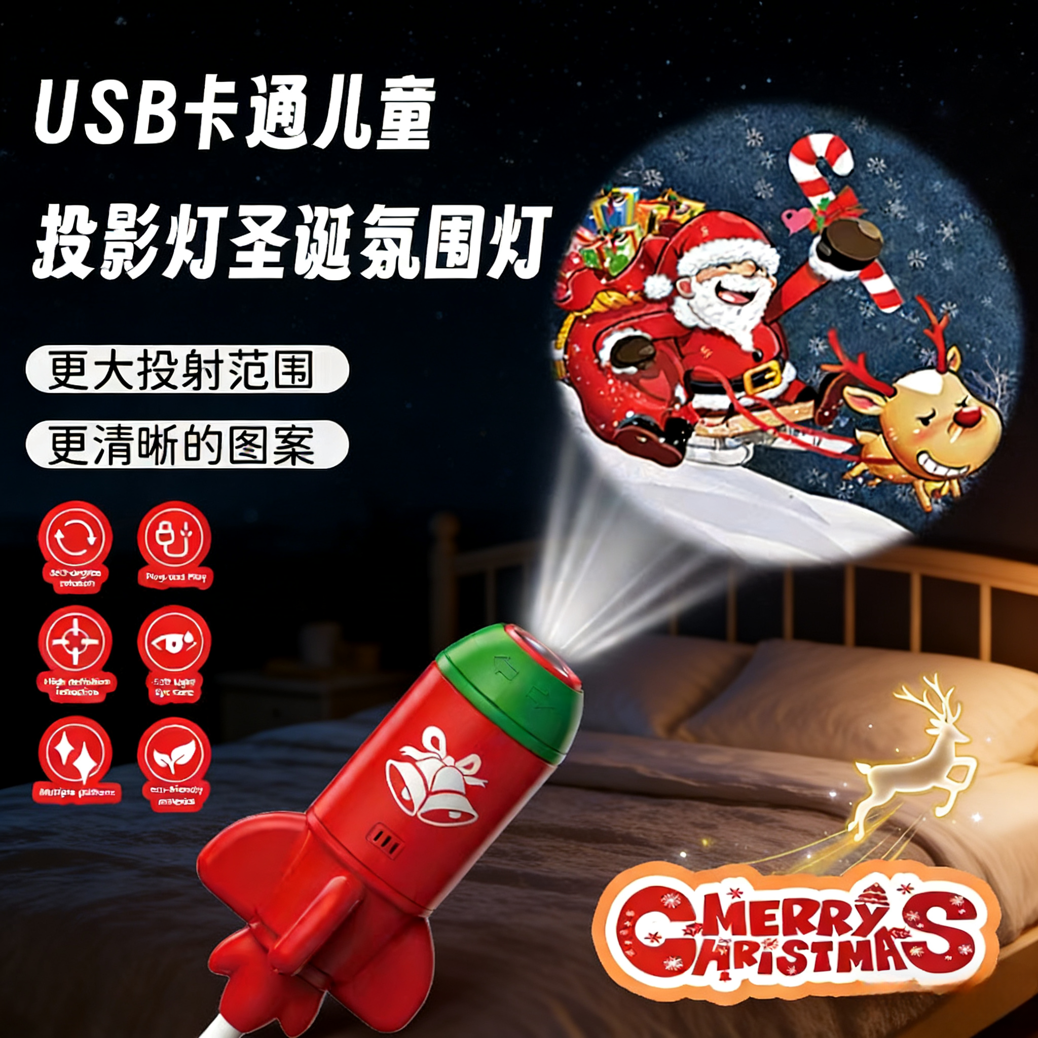 儿童圣诞节礼物发光投影灯手电筒小夜灯幼儿园男女孩益智夜光玩具