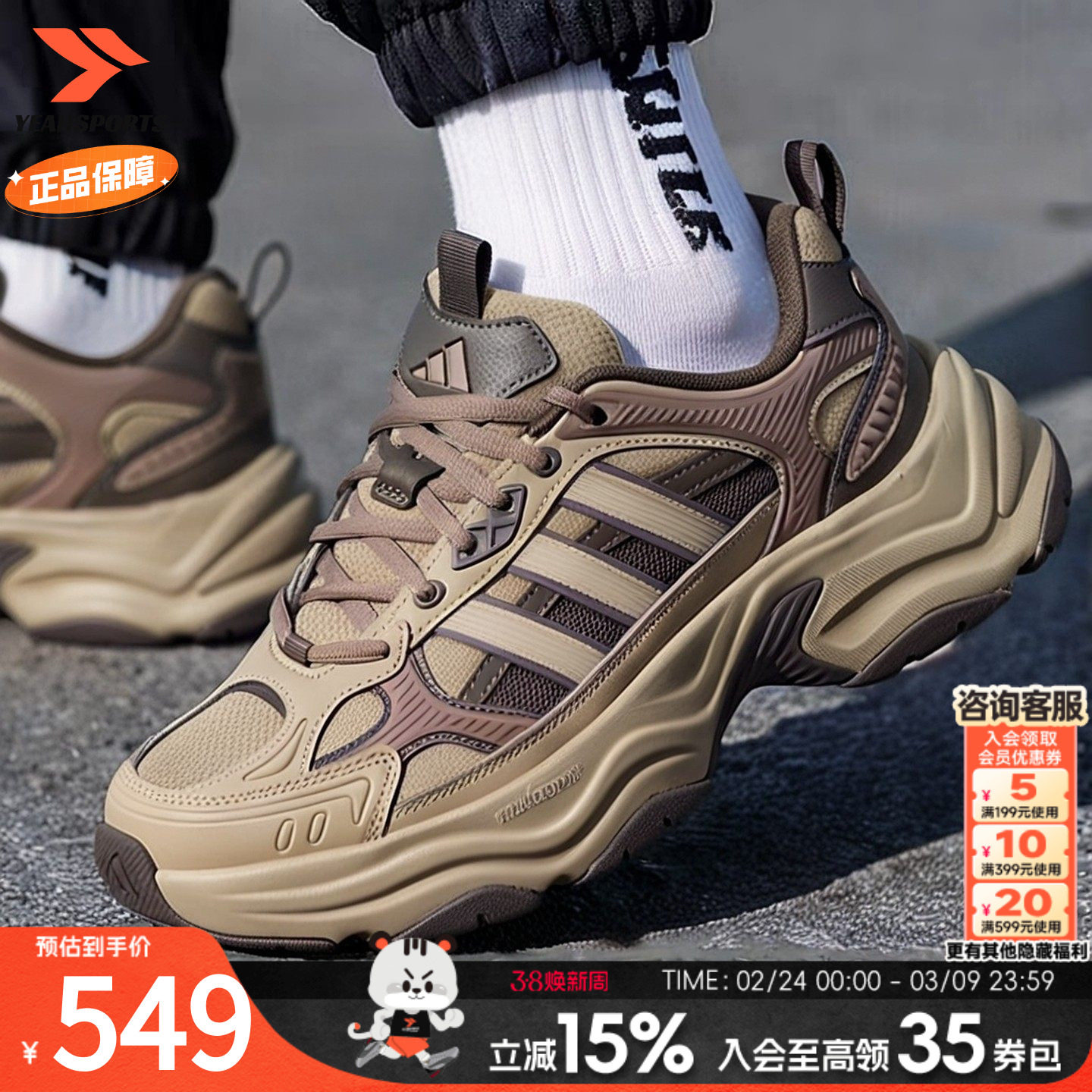 Adidas阿迪达斯官方男鞋女鞋跑步鞋棕褐色休闲鞋轻便缓震运动鞋