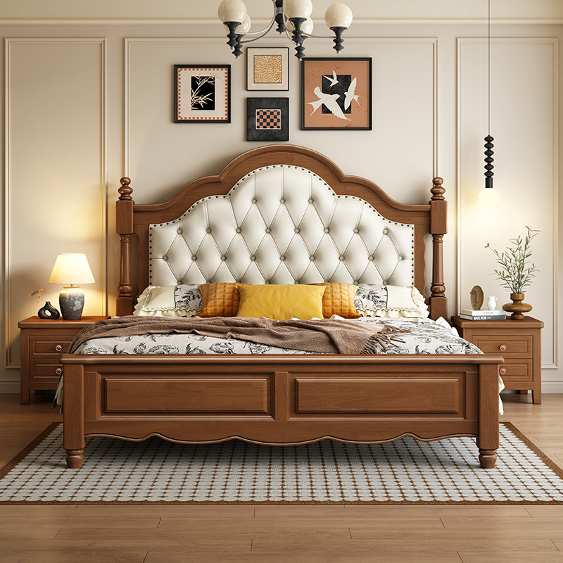 馨佰利实木床1.5米双人床2026新款北欧复古卧室家具软包卧室木床