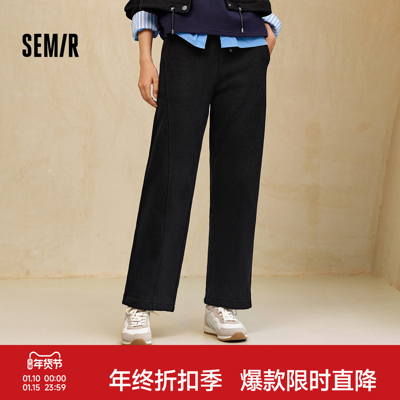 商场同款|森马休闲裤女冬季抓绒裤子宽松弯刀裤2025新款黑色长裤