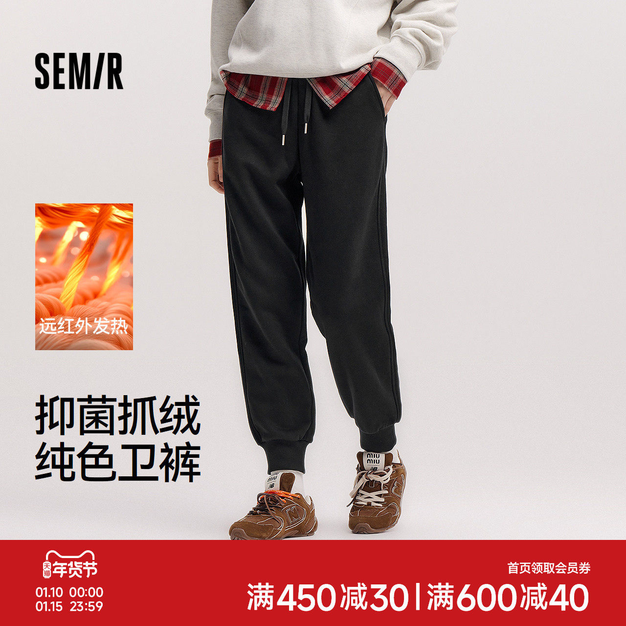 森马休闲裤女冬季发热抑菌抓绒纯色束脚长裤保暖基础百搭女生卫裤