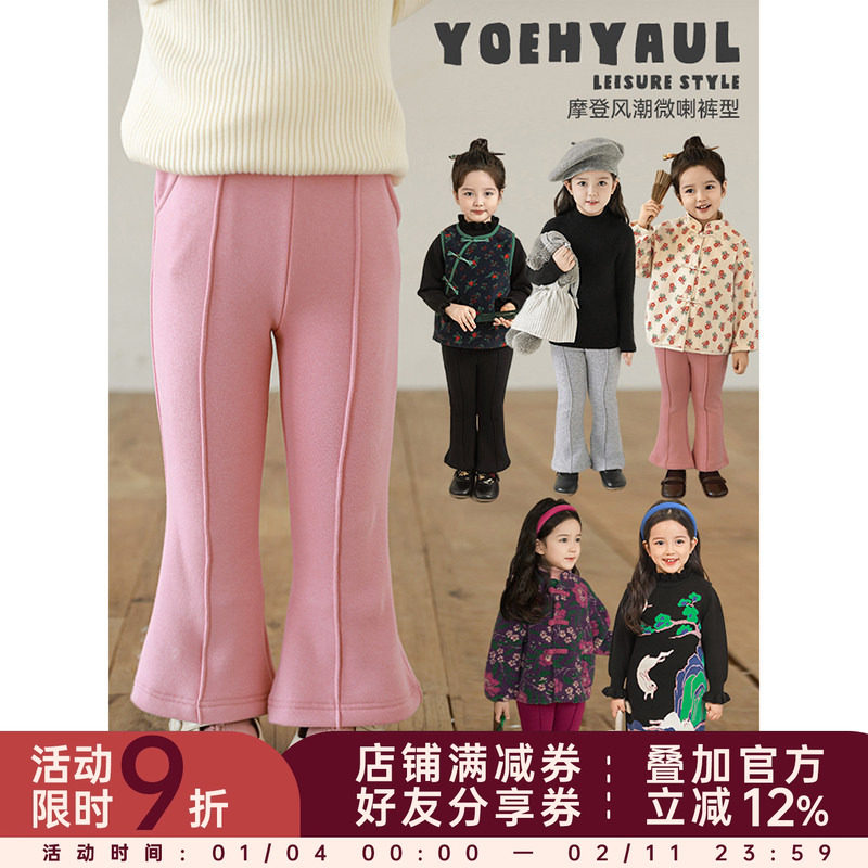 幼悠女童抓绒纯色喇叭裤冬季洋气可爱蓬松绵软保暖抗寒休闲裤子潮