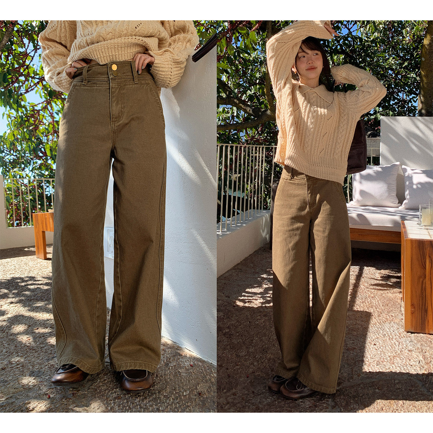 森马休闲裤女冬季抓绒分割松紧腰宽松长裤显腿长简约慵懒风阔腿裤