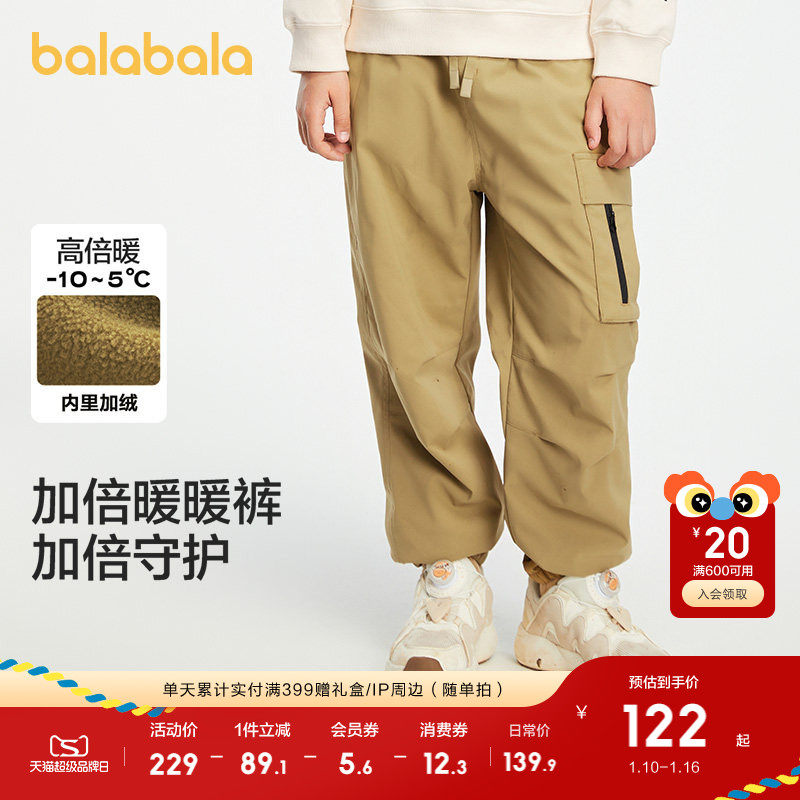 巴拉巴拉童装儿童裤子冬装男女童抓绒防水耐磨保暖户外束脚裤加绒