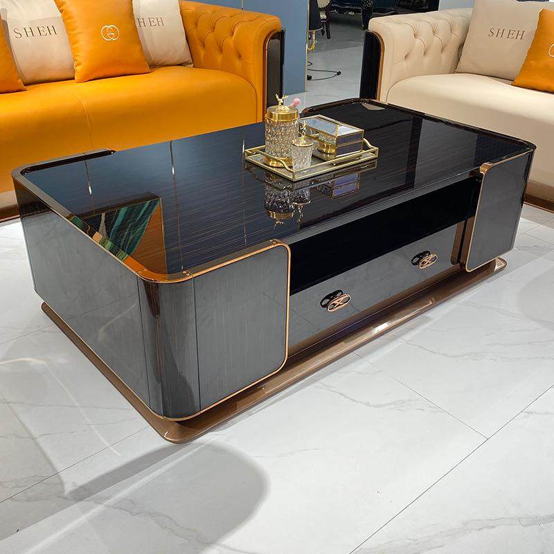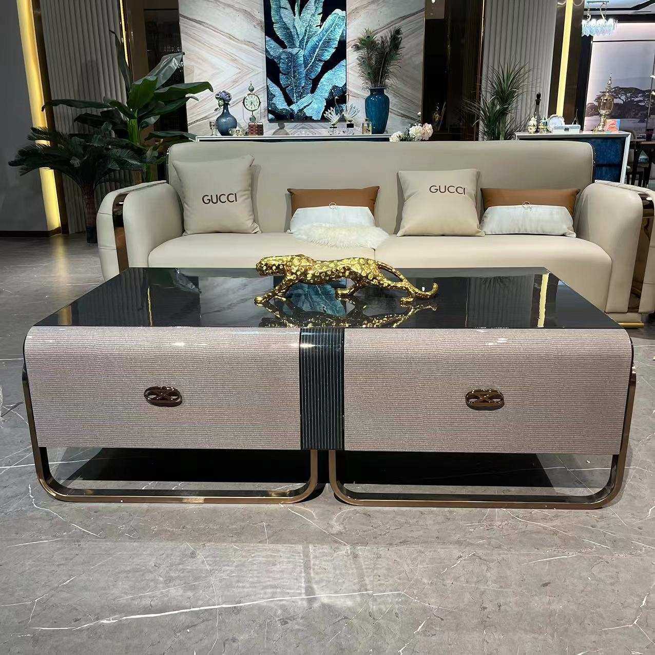 意式轻奢实木长茶几电视柜客厅精致别墅简约新款家具不锈钢储物柜