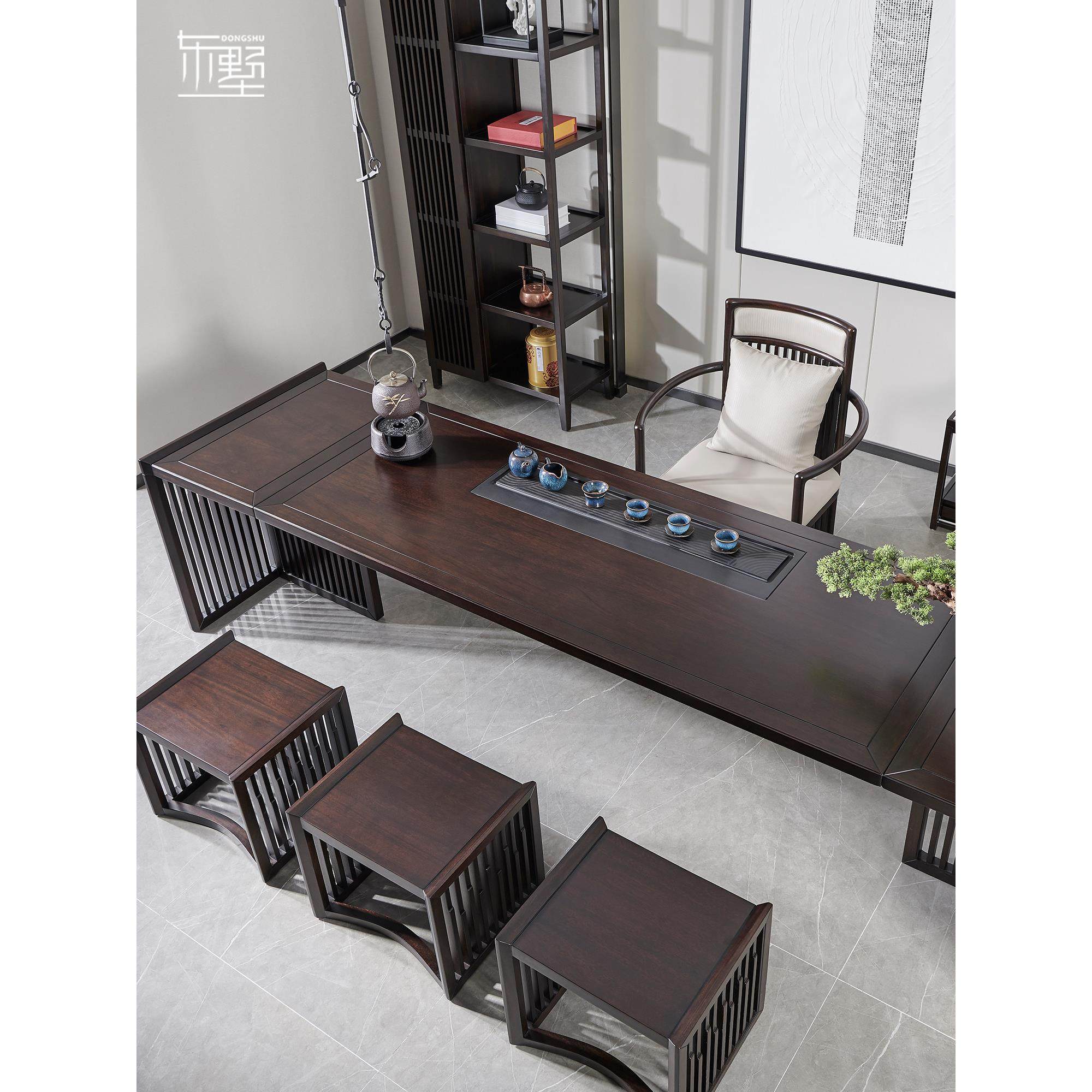 东首新中国风乌木功夫茶几茶椅组合高端办公家居一体实木长茶几P6