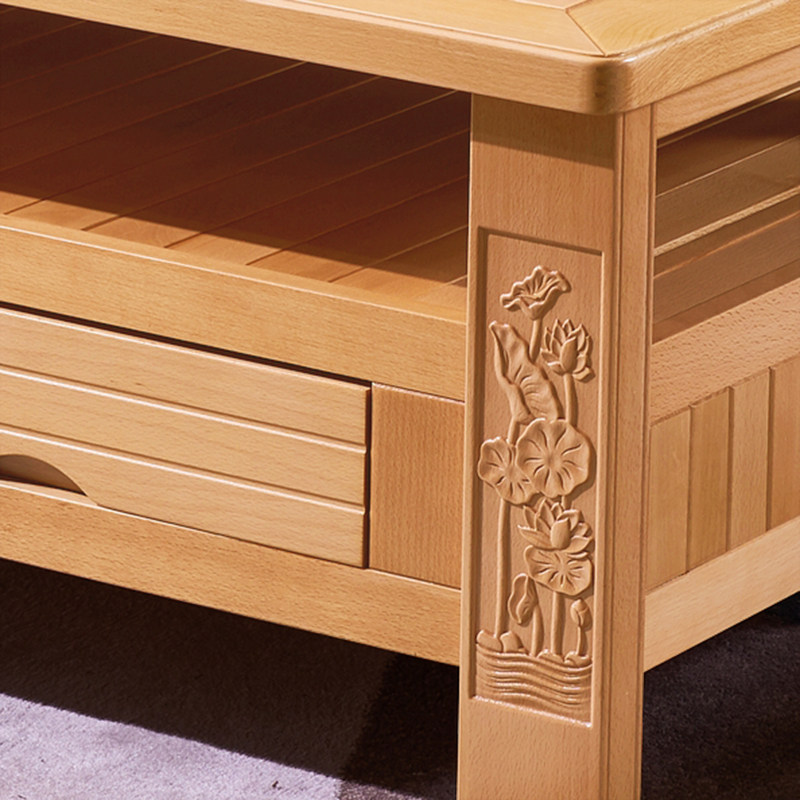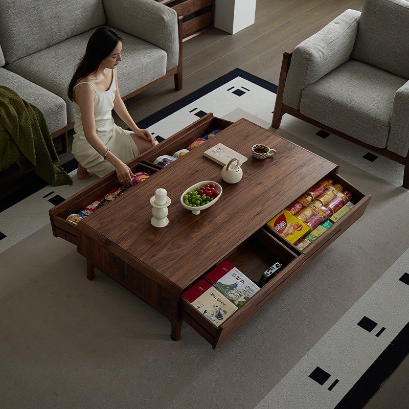 【折扣价】新中式实木长茶几简约现代大容量客厅茶台四抽屉储物大