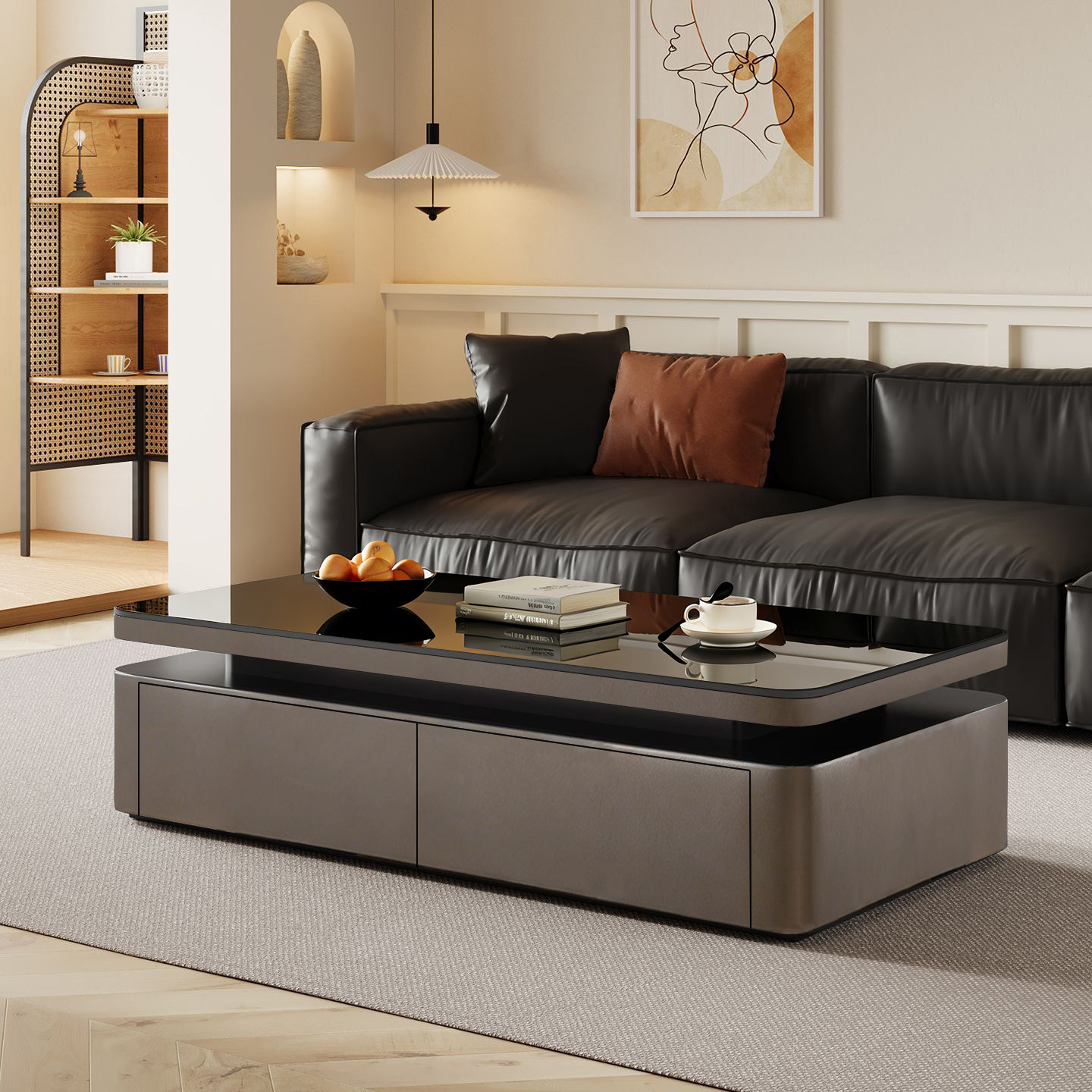 茶几实木意式客厅长方形轻奢高级感家用小户型黑色简约电视柜组合