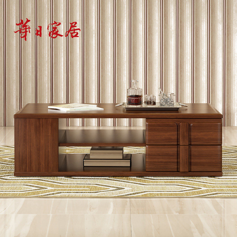 华日家居现代中式实木长茶几办公室储物收纳茶几 实木客厅家具j19