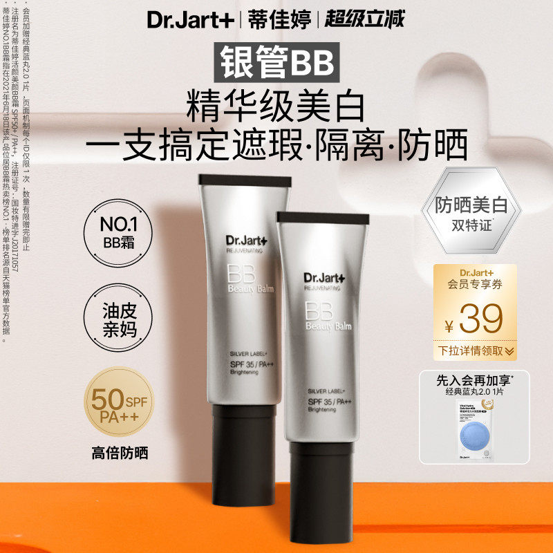 Dr.Jart+蒂佳婷防晒隔离bb霜强遮瑕自然持久不脱妆小银管提亮肤色