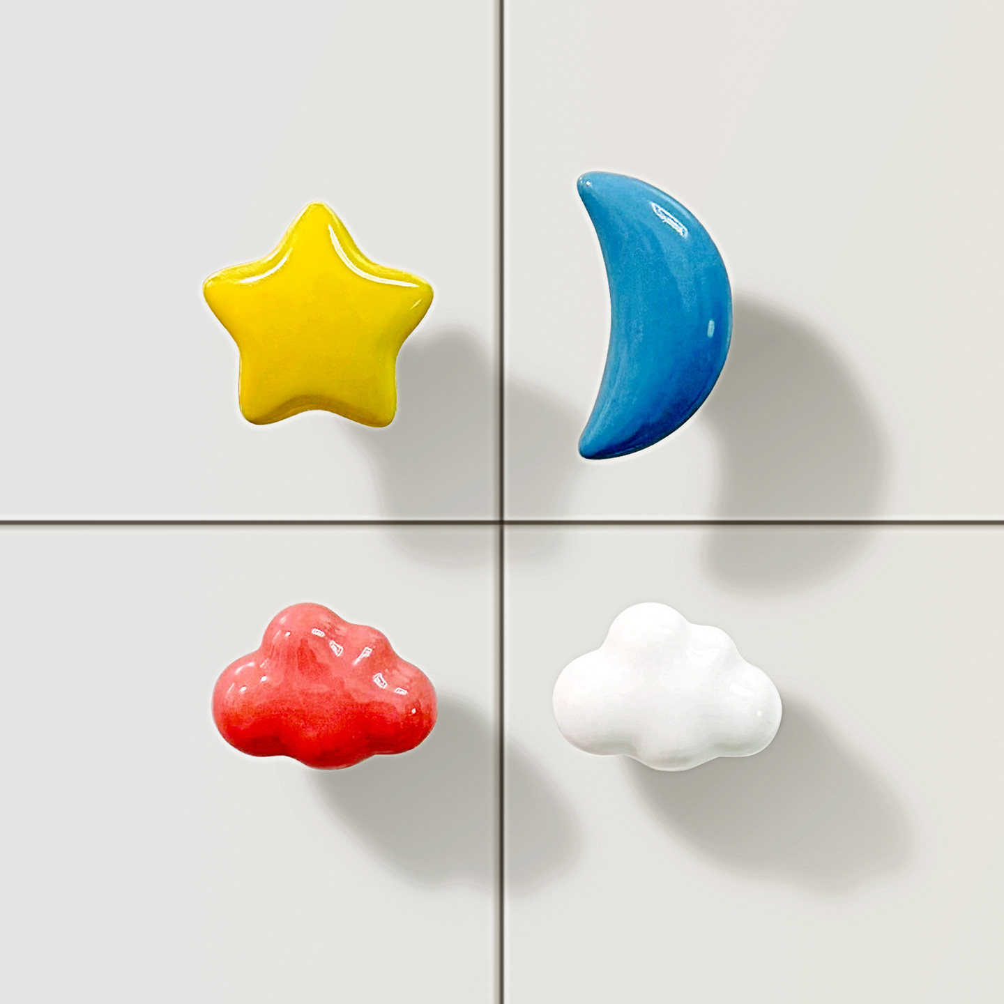 多巴胺可爱陶瓷拉手月亮星星云朵儿童房衣橱柜门子抽屉男女孩把手