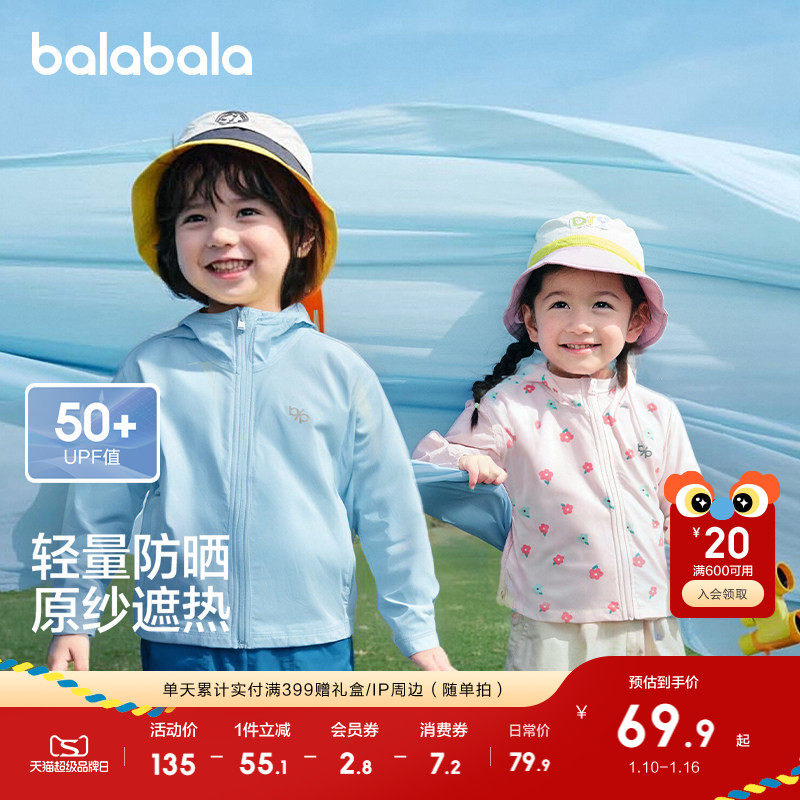 巴拉巴拉儿童防晒衣男童女童2025年夏季薄款皮肤衣透气宝宝亲子潮