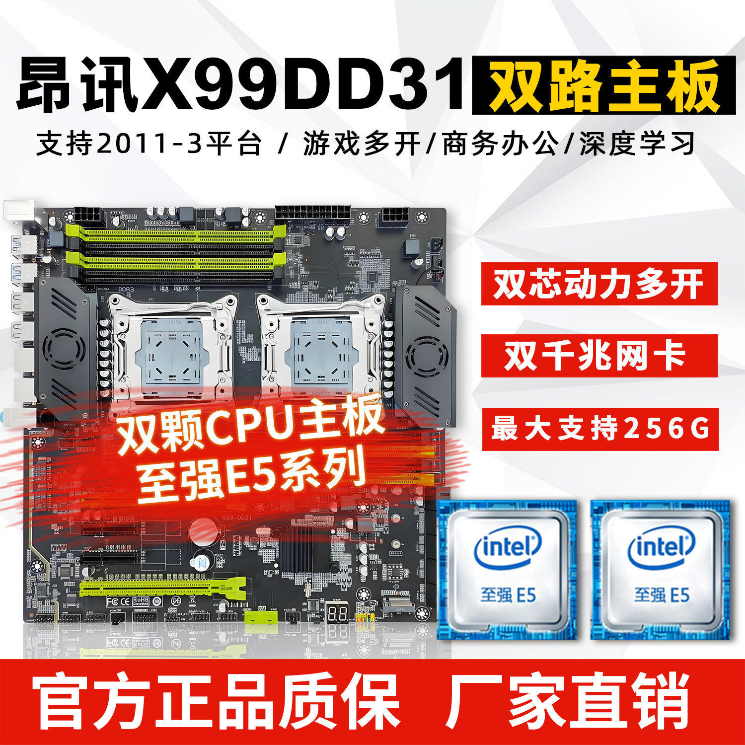 全新昂讯X99-DD31双路主板服务器平台游戏多开E5电脑8内存槽大板
