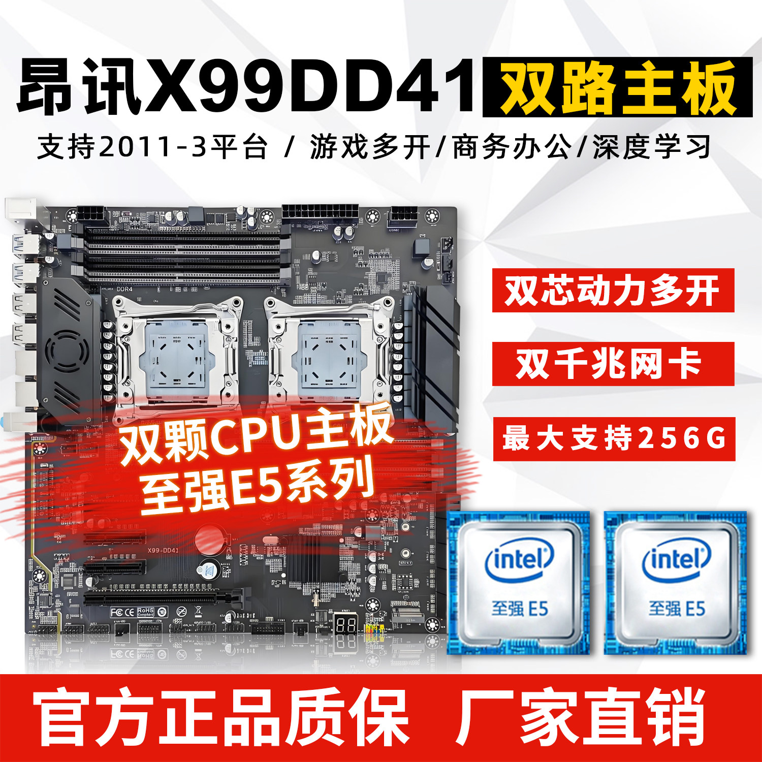 全新昂讯X99-DD41双路主板服务器平台游戏多开E5电脑8内存槽大板