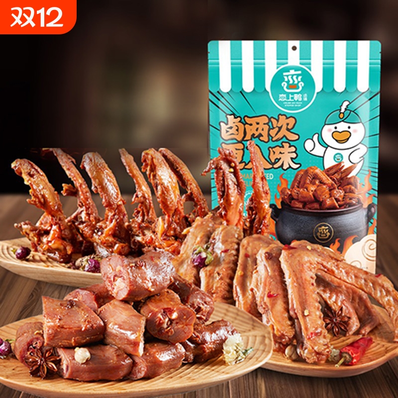 恋上鸭甜辣鸭脖子锁骨鸭翅根香烤卤味零食小包装散装鸭肉零食500g