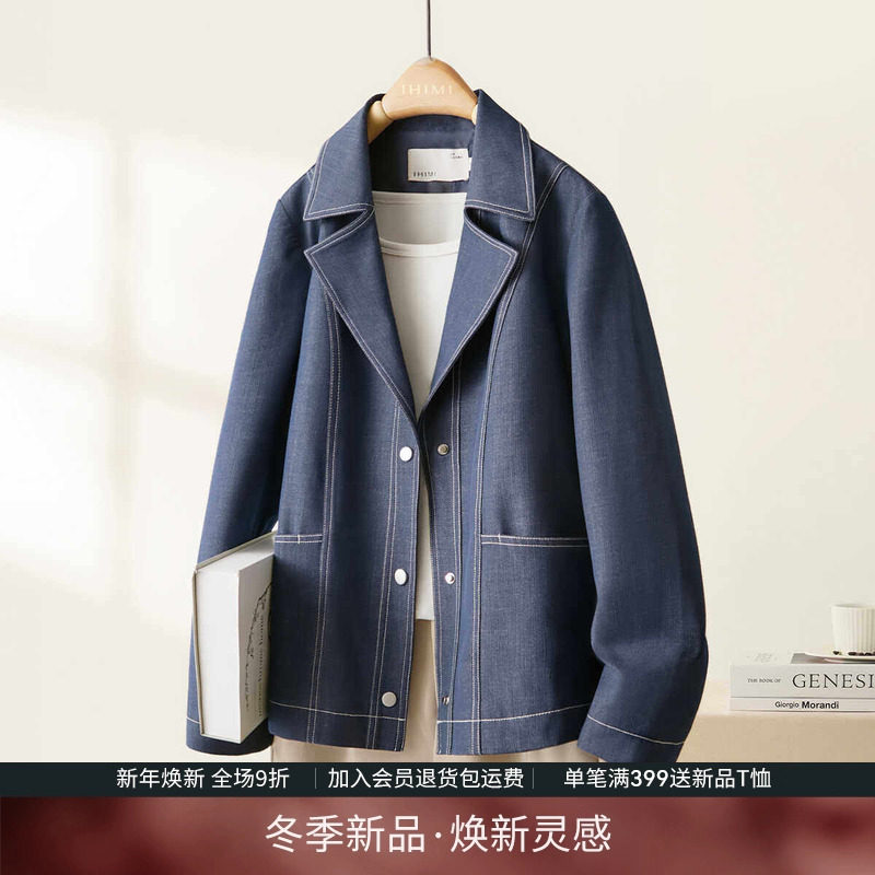 IHIMI海谧仿牛仔TR时尚风衣女2025秋季新款短款外套宽松休闲上衣