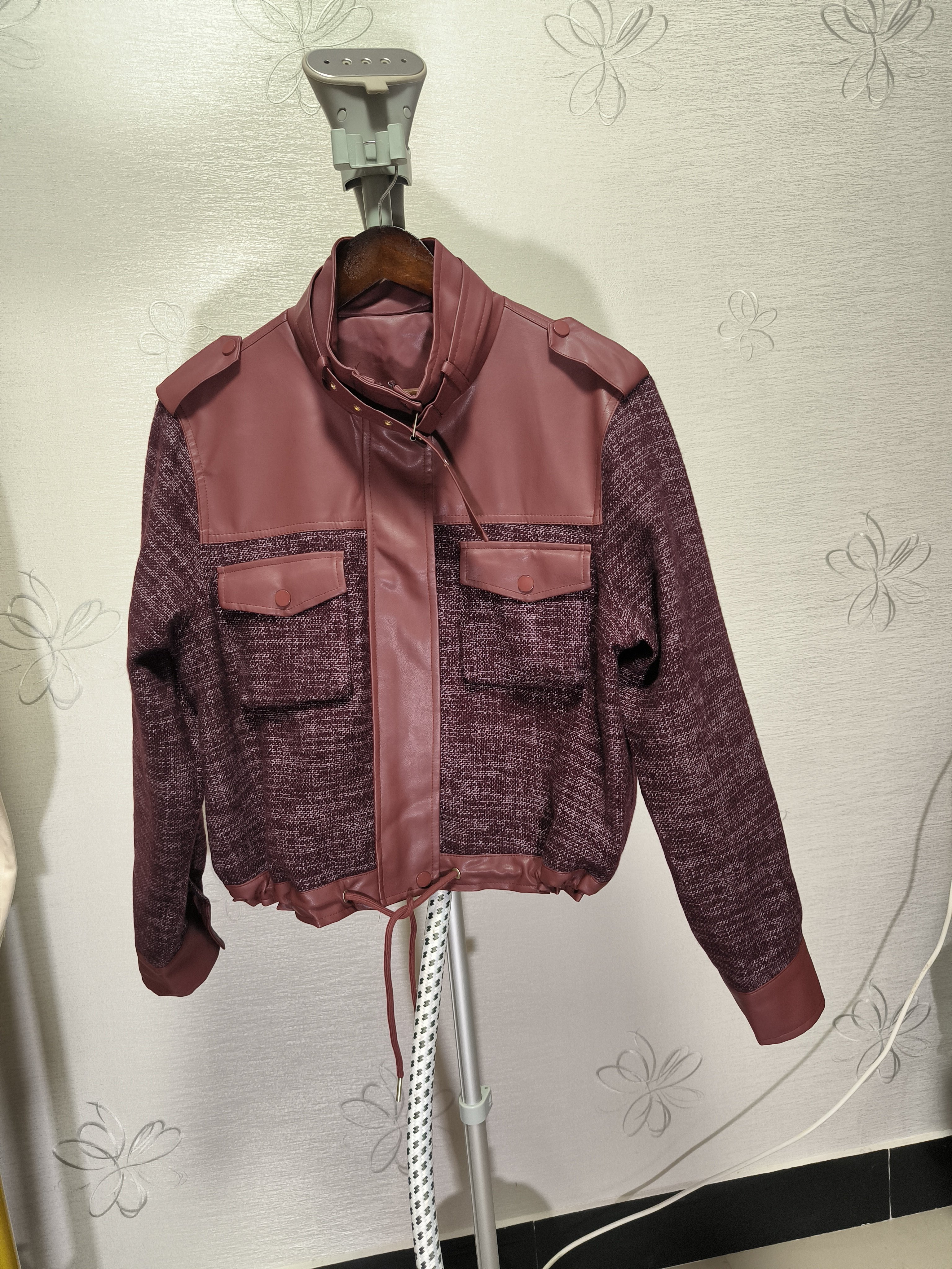 2024秋冬新款拼接扭结V领上衣长袖t恤大衣风衣外套牛仔裤套装女