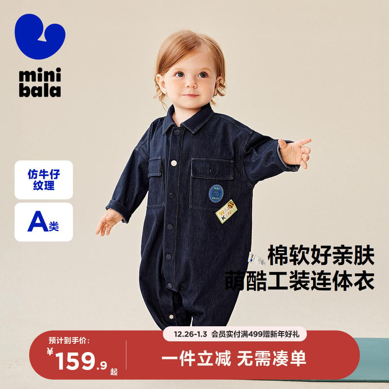 迷你巴拉巴拉宝宝仿牛仔连体衣男女宝复古工装风衣服2025秋季新款
