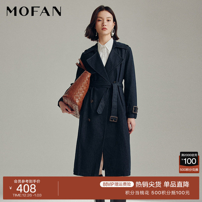 原色牛仔大翻领风衣外套女MOFAN摩凡2025秋款韩版双排扣休闲风衣