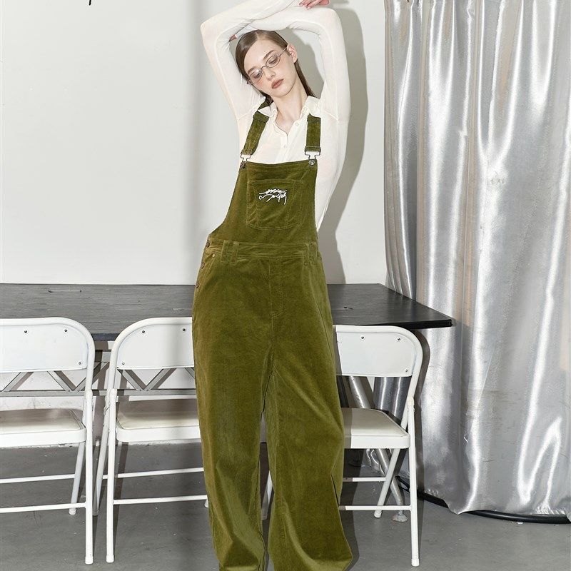 Brandy girl官网新款学院风直筒长裤女bm宽松百搭牛仔背带裤潮
