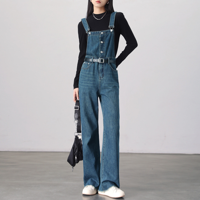 小众学院风直筒牛仔背带裤女2022春夏新款柔软水洗全棉连体长裤