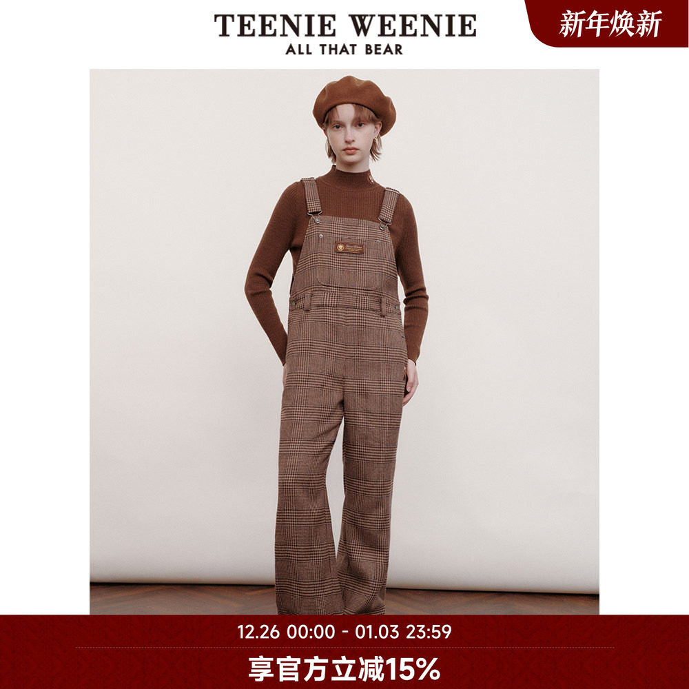 TeenieWeenie小熊奥莱春季学院风复古直筒格纹背带裤长裤子女