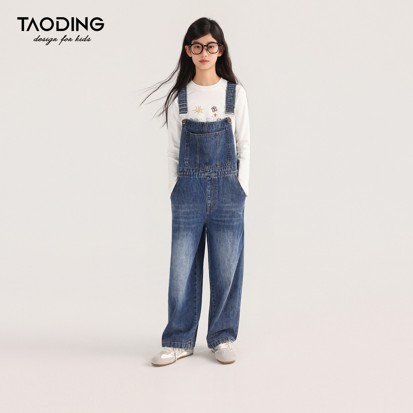 2024早春新款女装学院风休闲棉质牛仔裤背带裤长裤TTTJ246309N