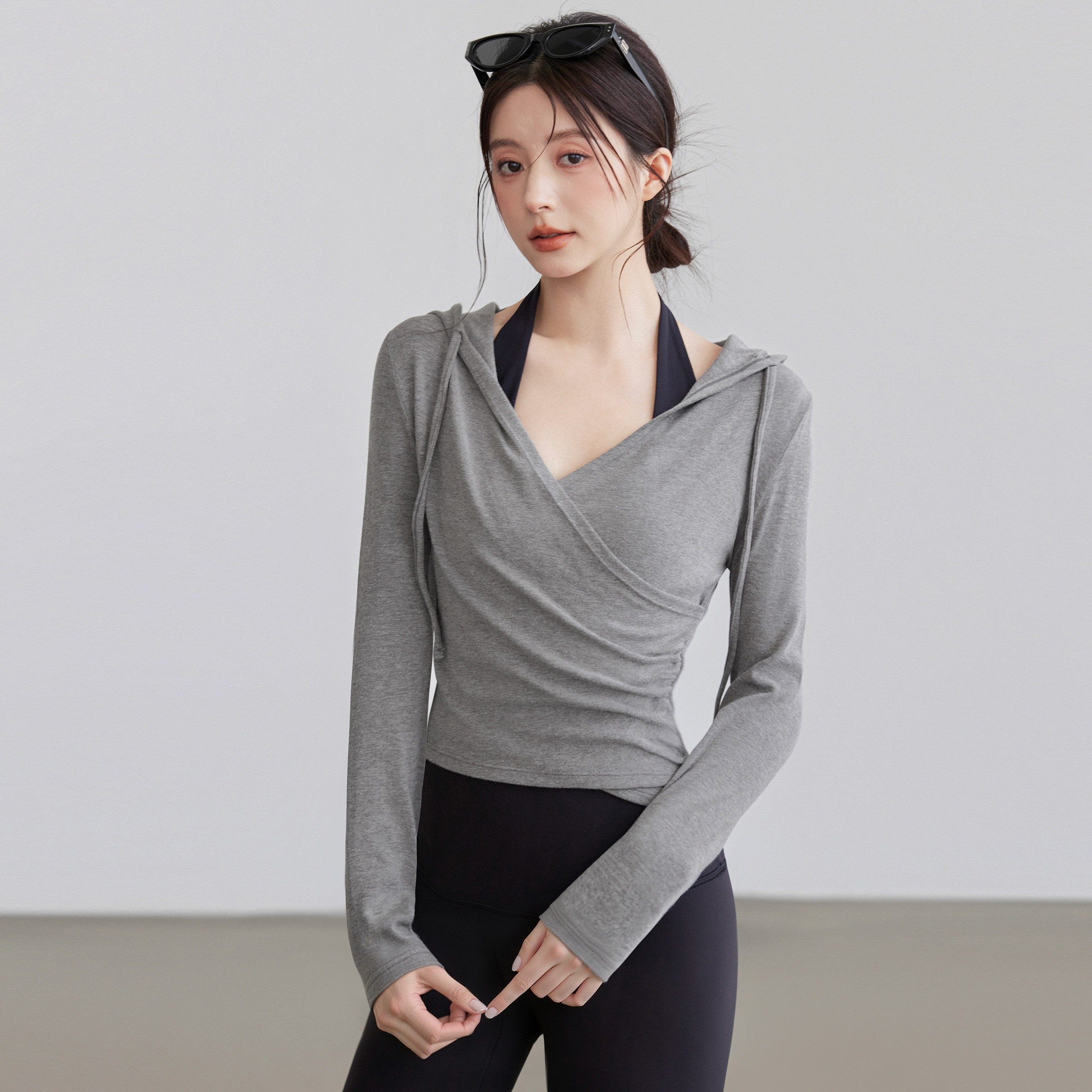 VOJ连帽瑜伽服秋季修身显瘦运动上衣紧身长袖训练健身服骑行套装