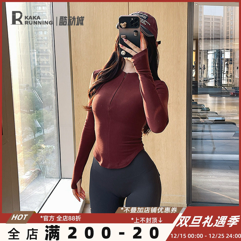 奔跑吧卡卡运动上衣女德绒隐形拉链长袖显瘦瑜伽服骑行健身服秋冬