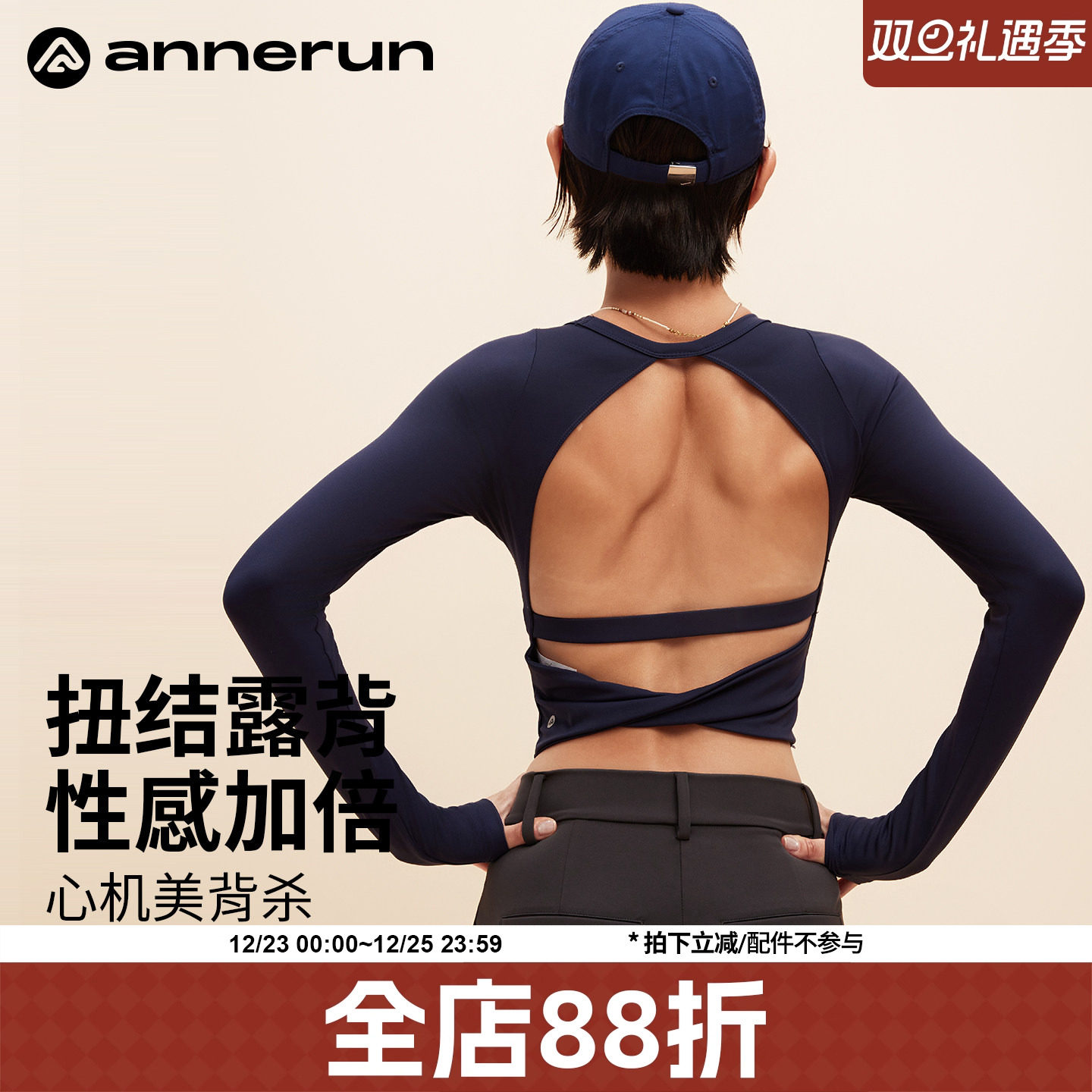 annerun美背镂空运动上衣女秋修身显瘦健身服骑行训练长袖瑜伽服