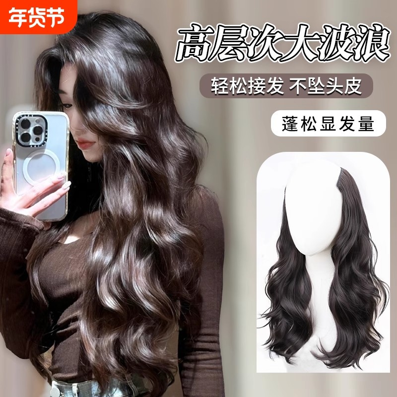 假发片女2025新款长卷发一片式高层次大波浪无痕增发量仿真接发片