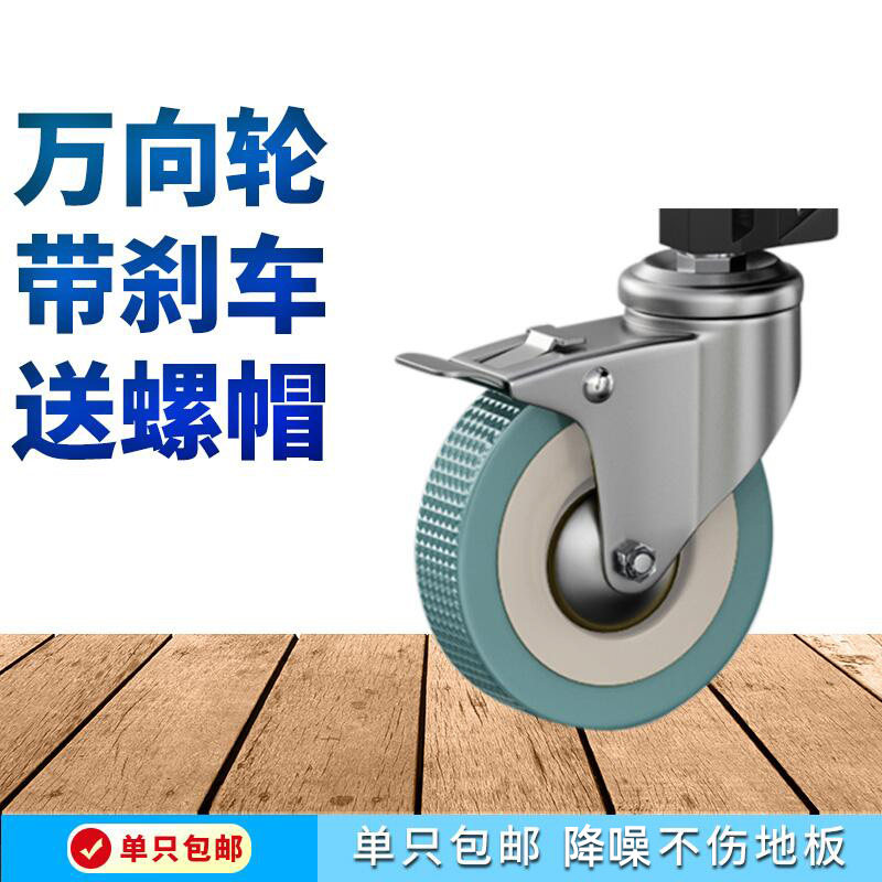 重型万向轮轮子橡胶静音轮承重小手推车脚轮3寸转向轮带刹车轱辘