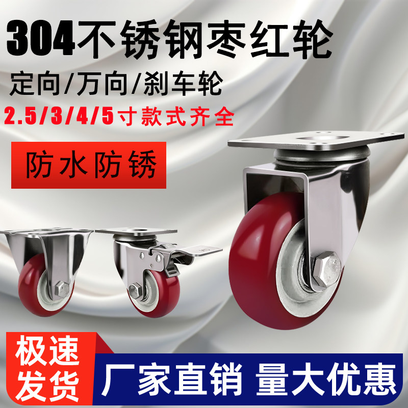 不锈钢脚轮万向轮3寸4寸5寸6寸8寸防锈聚氨酯静音耐磨手推车脚轮