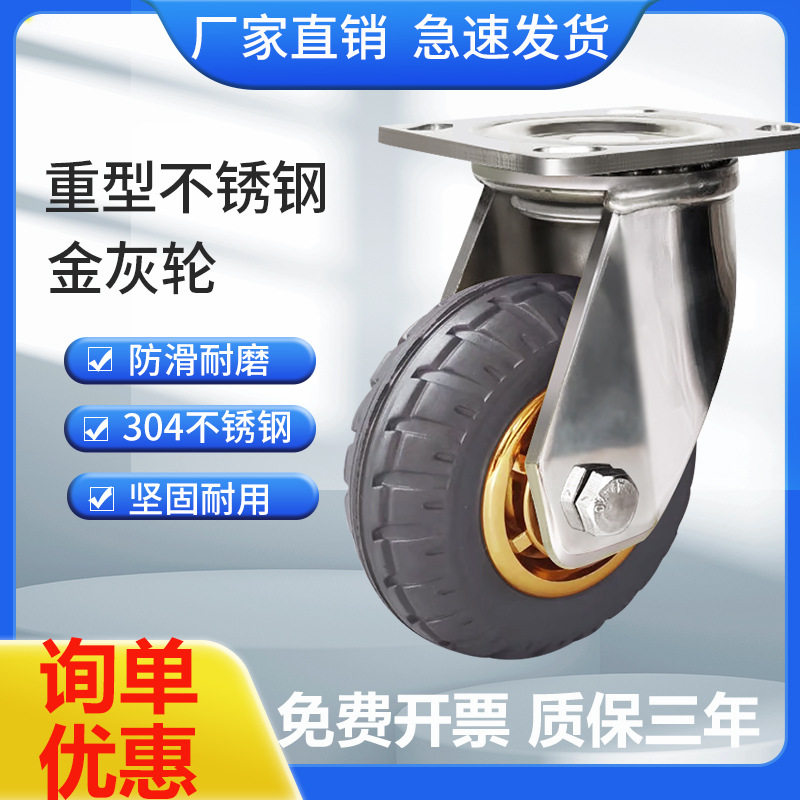 304不锈钢脚轮万向轮重型加厚弹力橡胶静音耐磨脚轮手推车脚轮