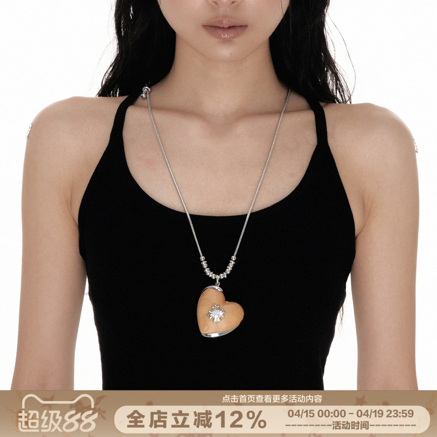 SUMIYAKI 天然木头爱心十字架项链 百搭长款毛衣链秋冬新款配饰女